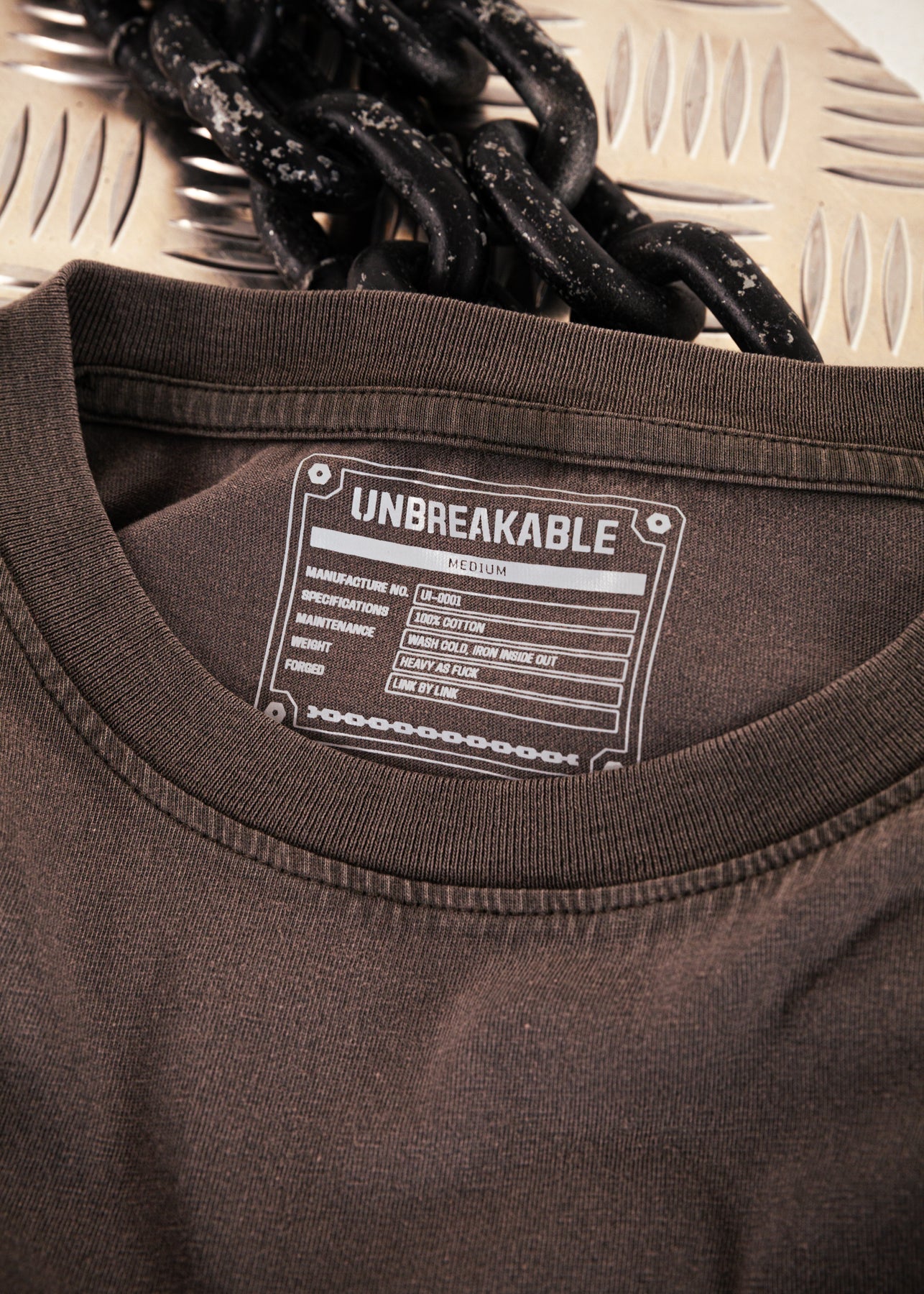 Minimal front hem branding creates a uniquely UNBREAKABLE look when layered. Full size back print featuring our LINK BY LINK motto. Finished with a red sleeve seal and stamped size plaque to avoid itchy labels, this t-shirt is optimised for comfort and freedom of movement while active or at rest.